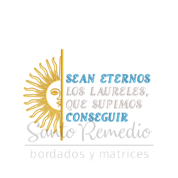 EN ESTE ARCHIVO PUEDES ENCONTRAR 1 MEDIDA de matriz para bordar Medio sol de Mayo con frase 18 x 13 cm